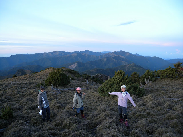 又對著層層疊疊的稜線後方出現的高聳山峰大喊雪山或是南湖中央尖,