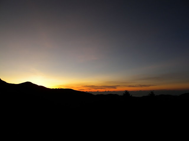 兩點半早起在星夜中登大水窟山,回望東方的凹谷,